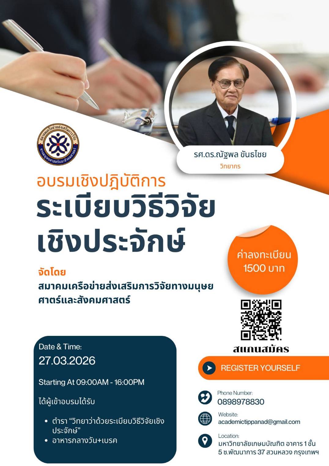 ขอเชิญเข้าร่วมอบรมเชิงปฏิบัติการระเบียบวิธีวิจัยเชิงประจักษ์