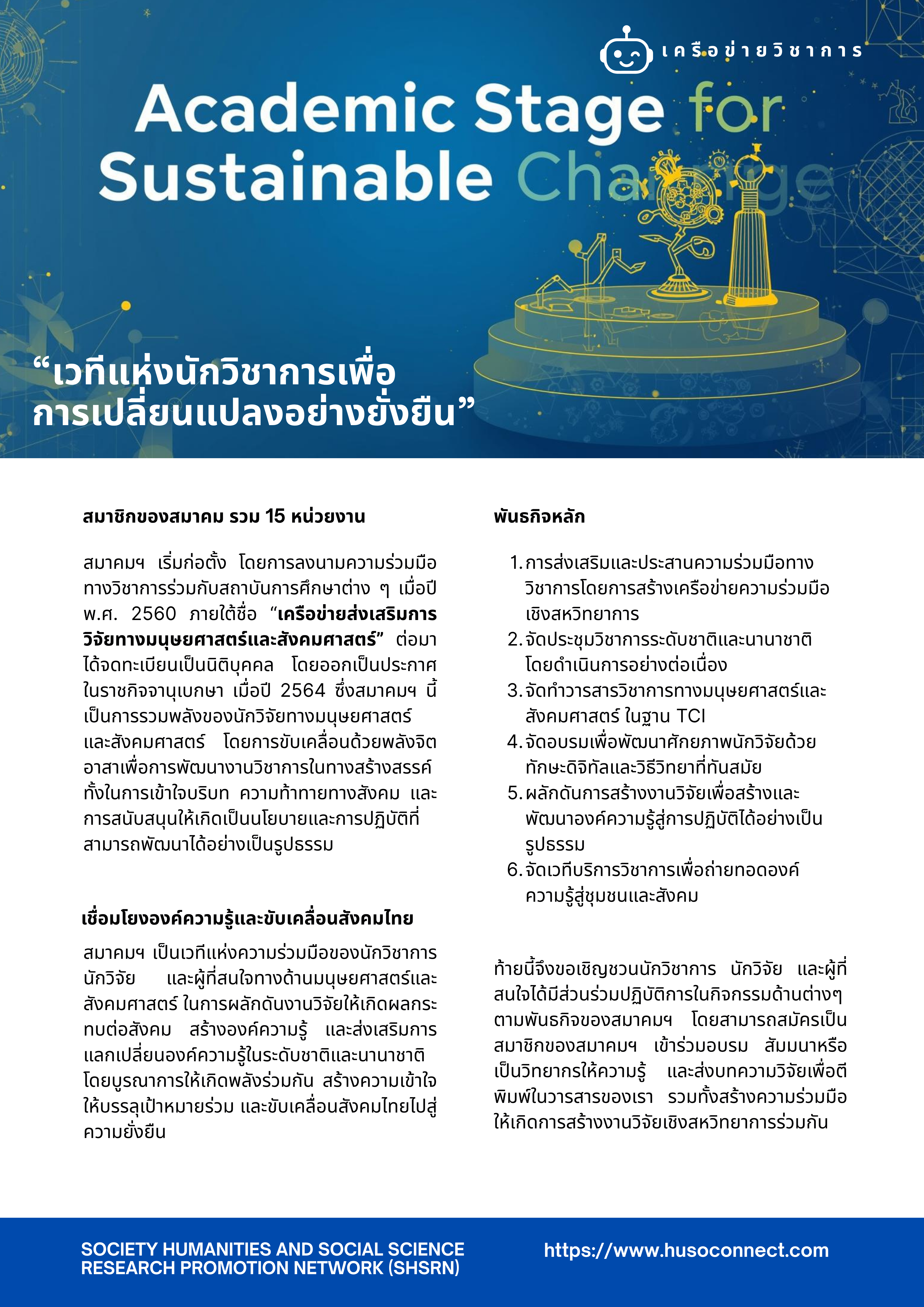 "เวทีแห่งนักวิชาการ เพื่อการเปล่ยนแปลงอย่างยั่งยืน" ข่าวประชาสัมพันธ์ สมาคมเครือข่ายส่งเสริมการวิจัยทางมนุษยศาสตร์และสังคมศาสตร์ 12 Nov 2025